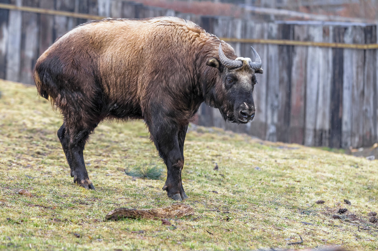 Má mohutnou klabonosou hlavu, charakteristicky tvarované rohy (vyskytují se u samce i samice) a dlouhou vlnitou srst, která ho skvěle chrání v drsných horských podmínkách.